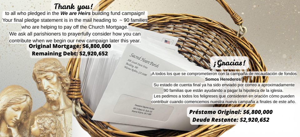 Sacred Heart Parish seeks to live its Catholic tradition and to build a community of faith through worship, education, stewardship, Christian service, and evangelization in order to share God's love for all people.